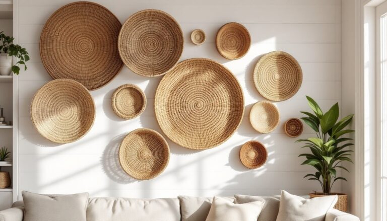Baskets aren’t just for storage anymore. When mounted on walls, they become textured, three-dimensional art that brings warmth and character to