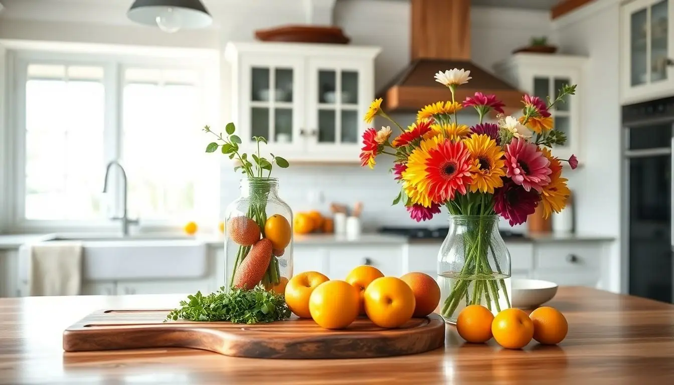 Changing centerpieces by season keeps the decor fresh and inviting. In spring, vibrant flowers in bright vases signal rejuvenation and growth. Summer showcases fresh fruits in decorative bowls, emphasizing seasonal flavors. Autumn invites arrangements with colorful leaves, pinecones, and gourds for a warm, rustic look. Winter lends itself to evergreen branches or simple candle displays that evoke a tranquil environment. Selecting centerpieces with varying heights creates visual interest, ensuring the kitchen remains a lively and inviting space year-round.